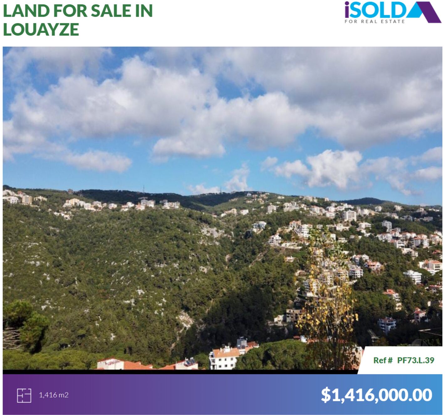 Ref (PF73.L.39) A 1416 m2 land having a Panoramic View 360° for sale in Louayze/Tallet El Riyad