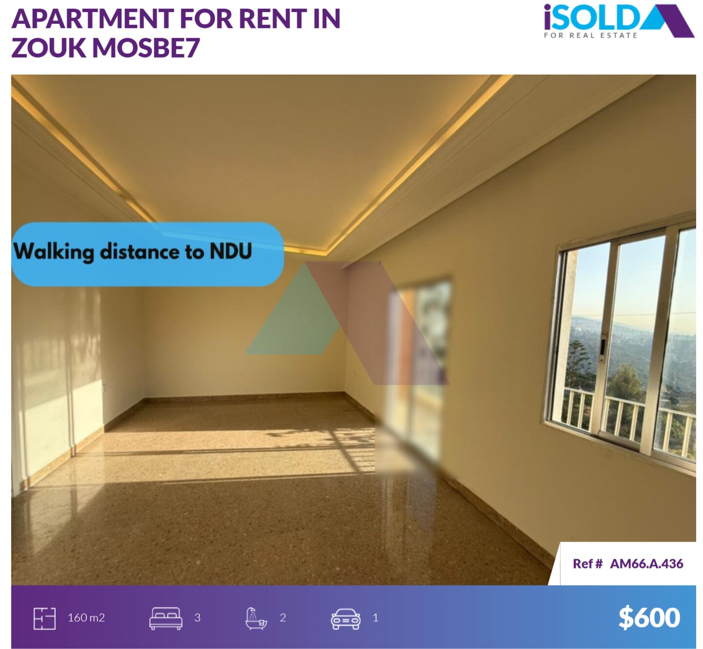 For more info, kindly contact us on 71 66 55 71 / 71 788 178 or message us on WhatsApp with your full name and the reference number of the property and we will contact you the soonest.