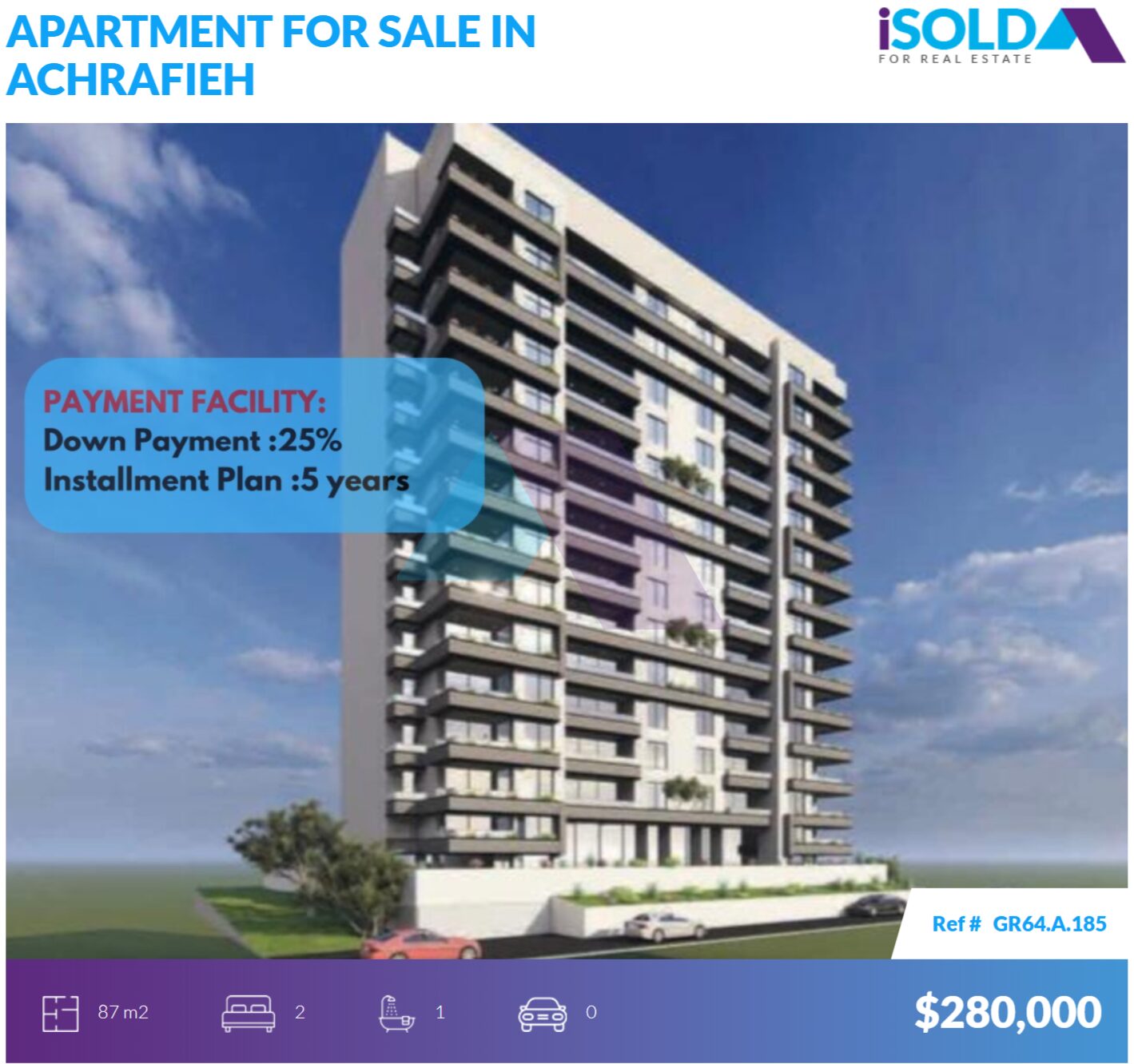 السعر: ٢٨٠,٠٠٠ دولار أمريكي (سعر المتر يبدأ من ٣٢٠٠ دولار أمريكي)