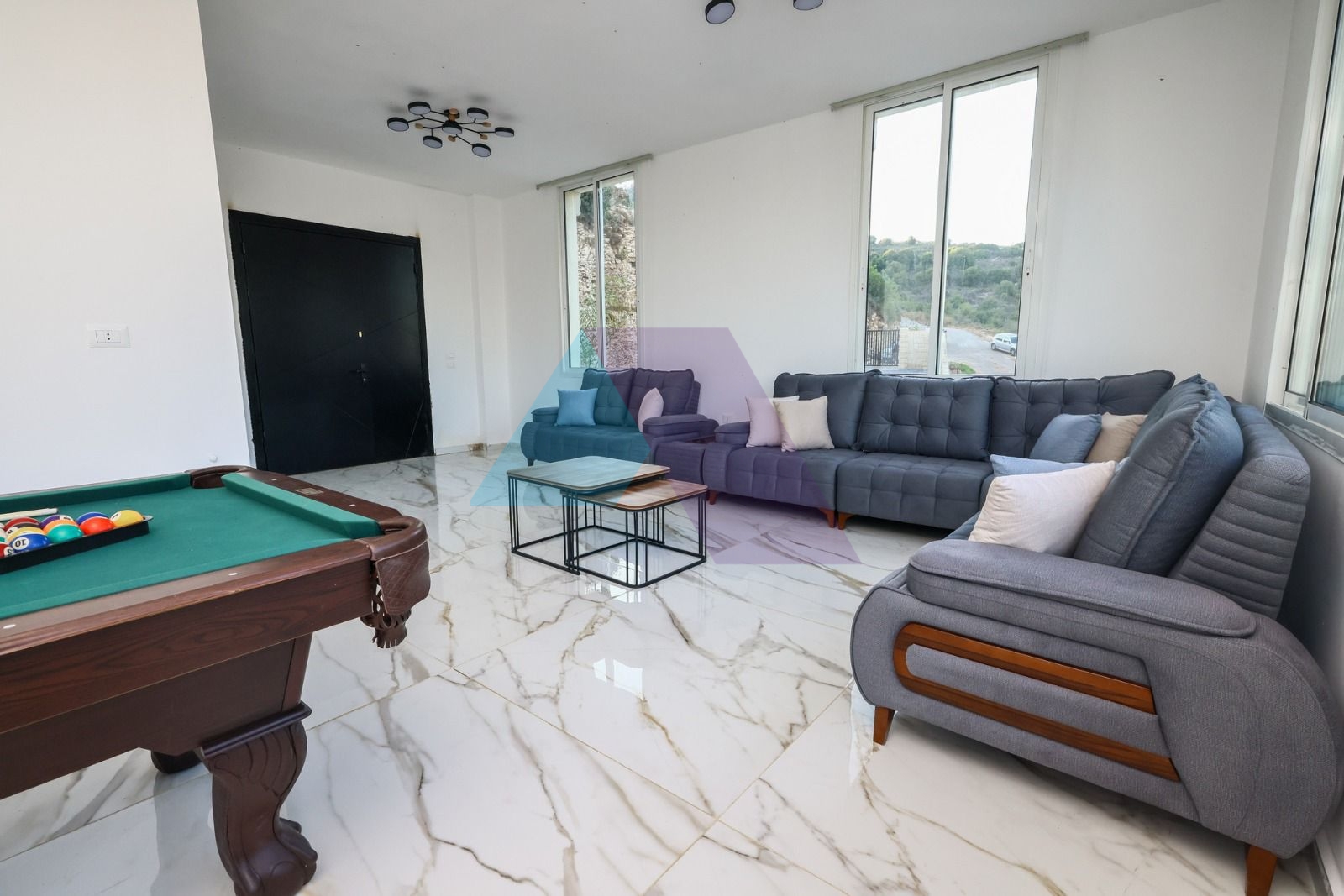• مساحات المعيشة: صالون، غرفة طعام، غرفة جلوس