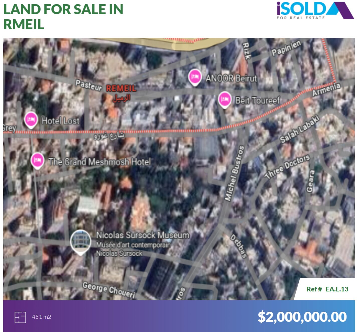 451 m2 land with prime location 4sale in Rmeil – أرض للبيع في الرميل