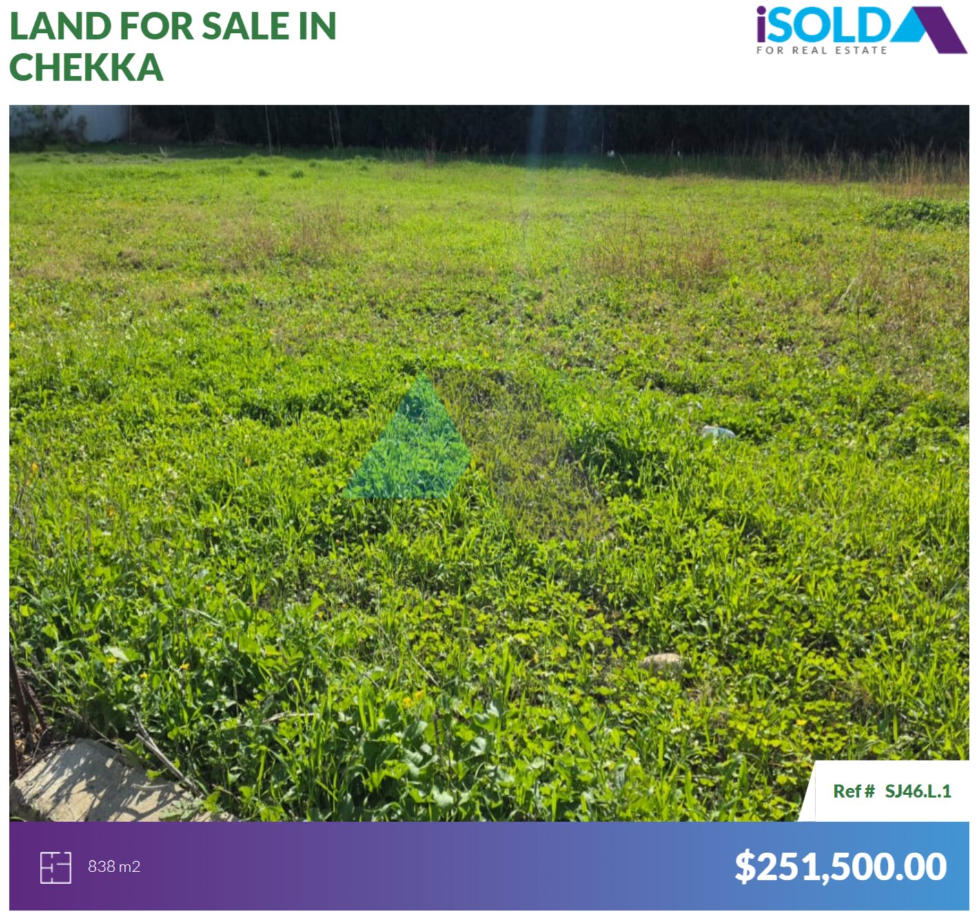 أرض مساحتها ٨٣٨ مترًا مربعًا في موقع مميز للبيع في الشيكا