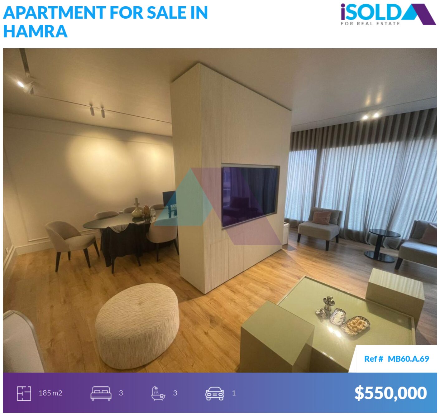 For more info, kindly contact us on 71 66 55 71 / 71 788 178 or message us on WhatsApp with your full name and the reference number of the property and we will contact you the soonest.