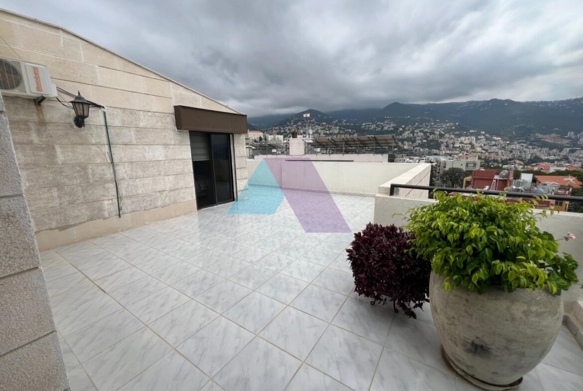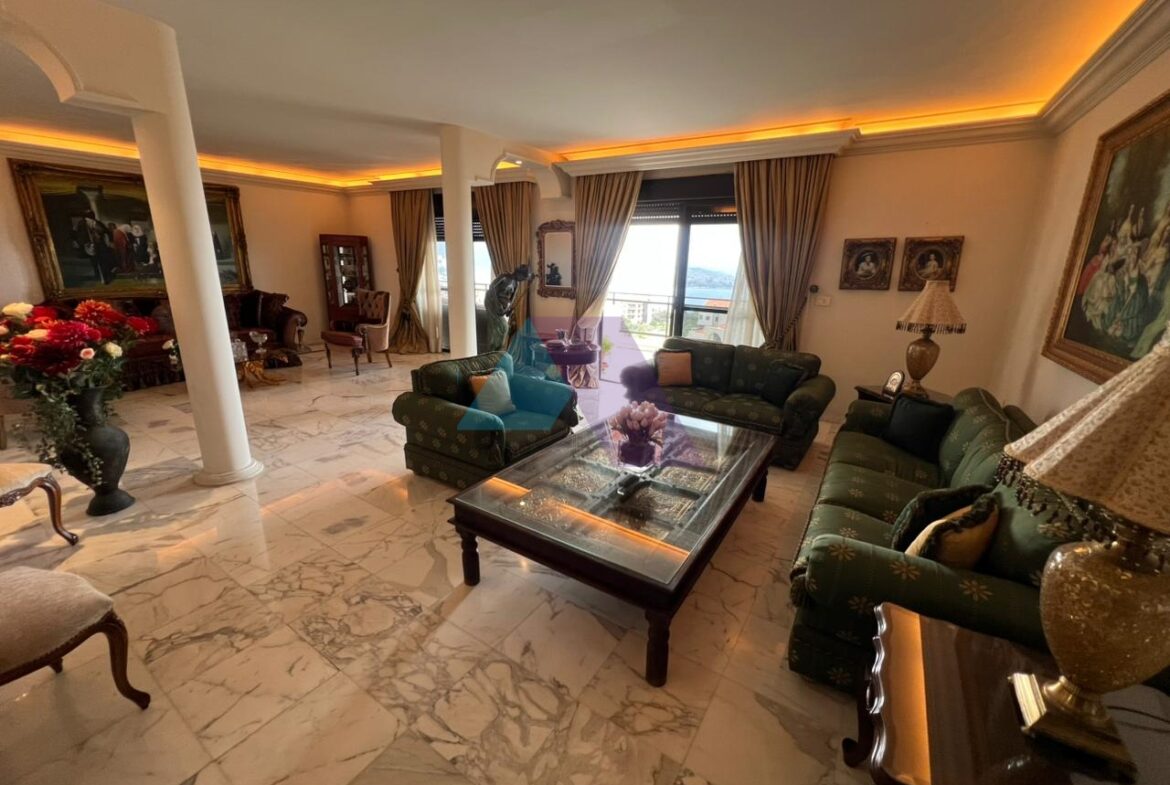 شقة بمساحة ٢٤٠ مترًا مربعًا مع تراس بإطلالة بانورامية على البحر والجبل للبيع في أدما – موقع مميز