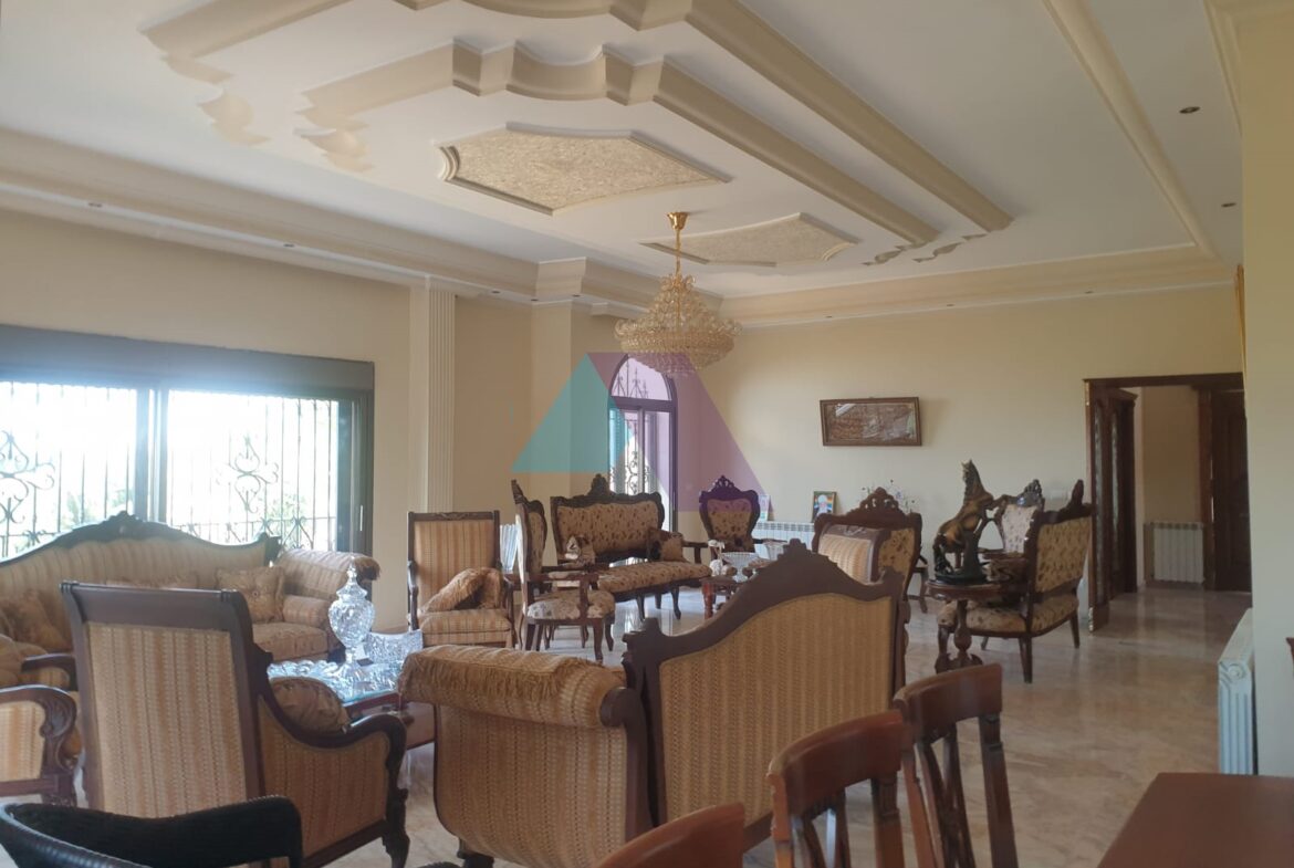 A 750 m2 Triplex Villa with Garden and Terrace Having an Open Mountain View for Rent in Dhour El Aabediyeh-Aley