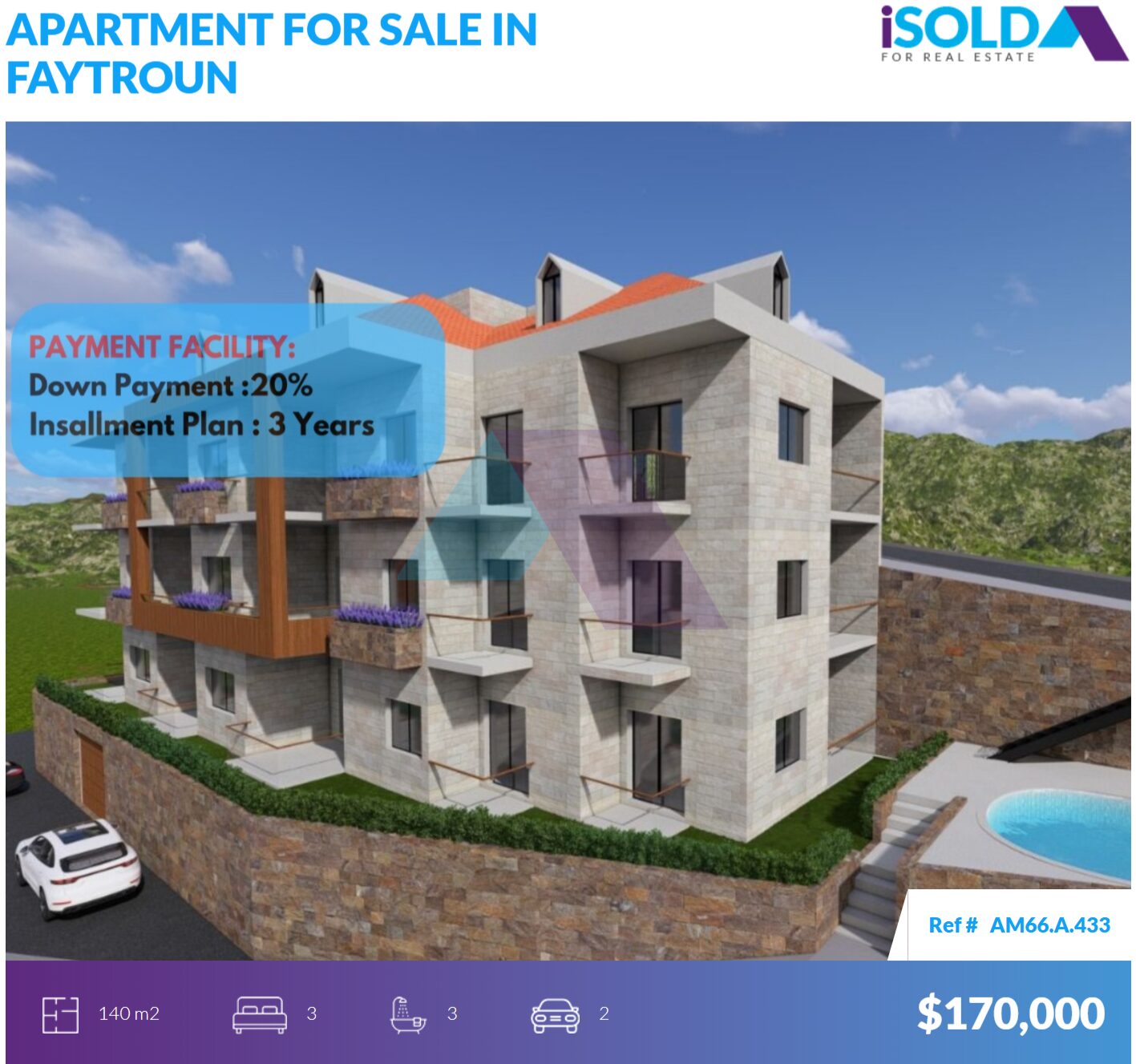 -Starting Price: 170.000$ (20% first payment, 3 years instalment)