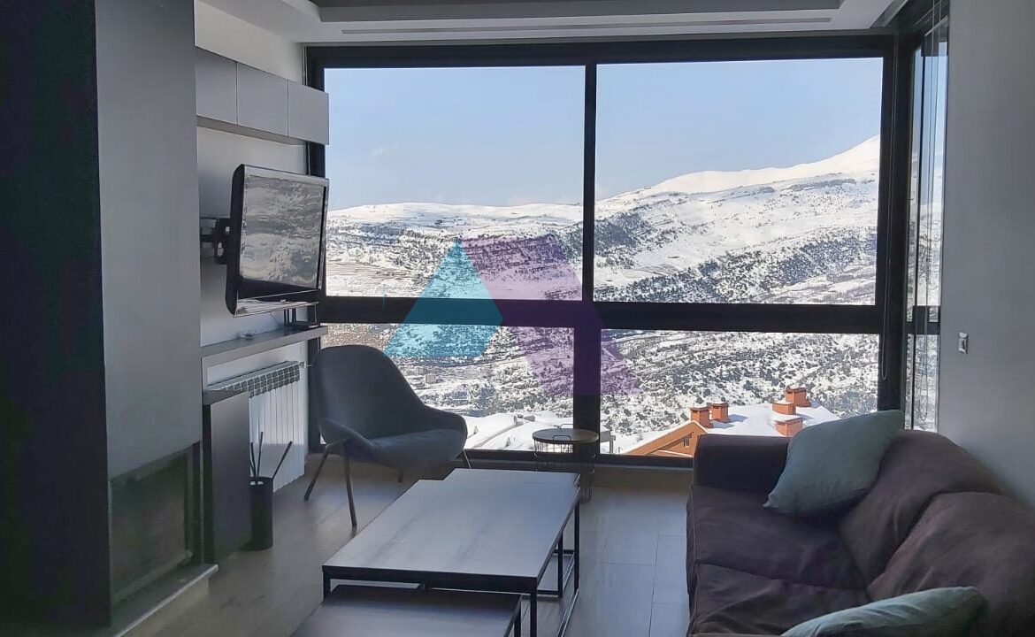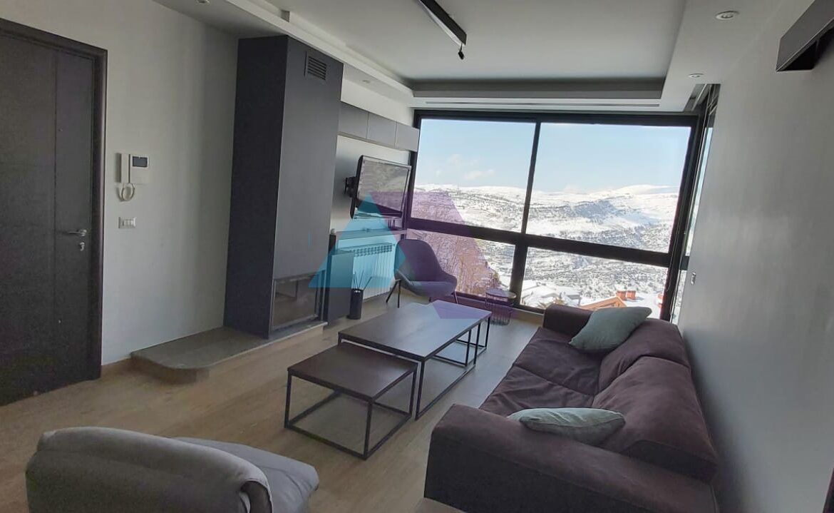 شاليه جديد كلياً مفروش بالكامل بمساحة 90 متر مربع، بإطلالة جبلية مفتوحة، للبيع في الزعرور.