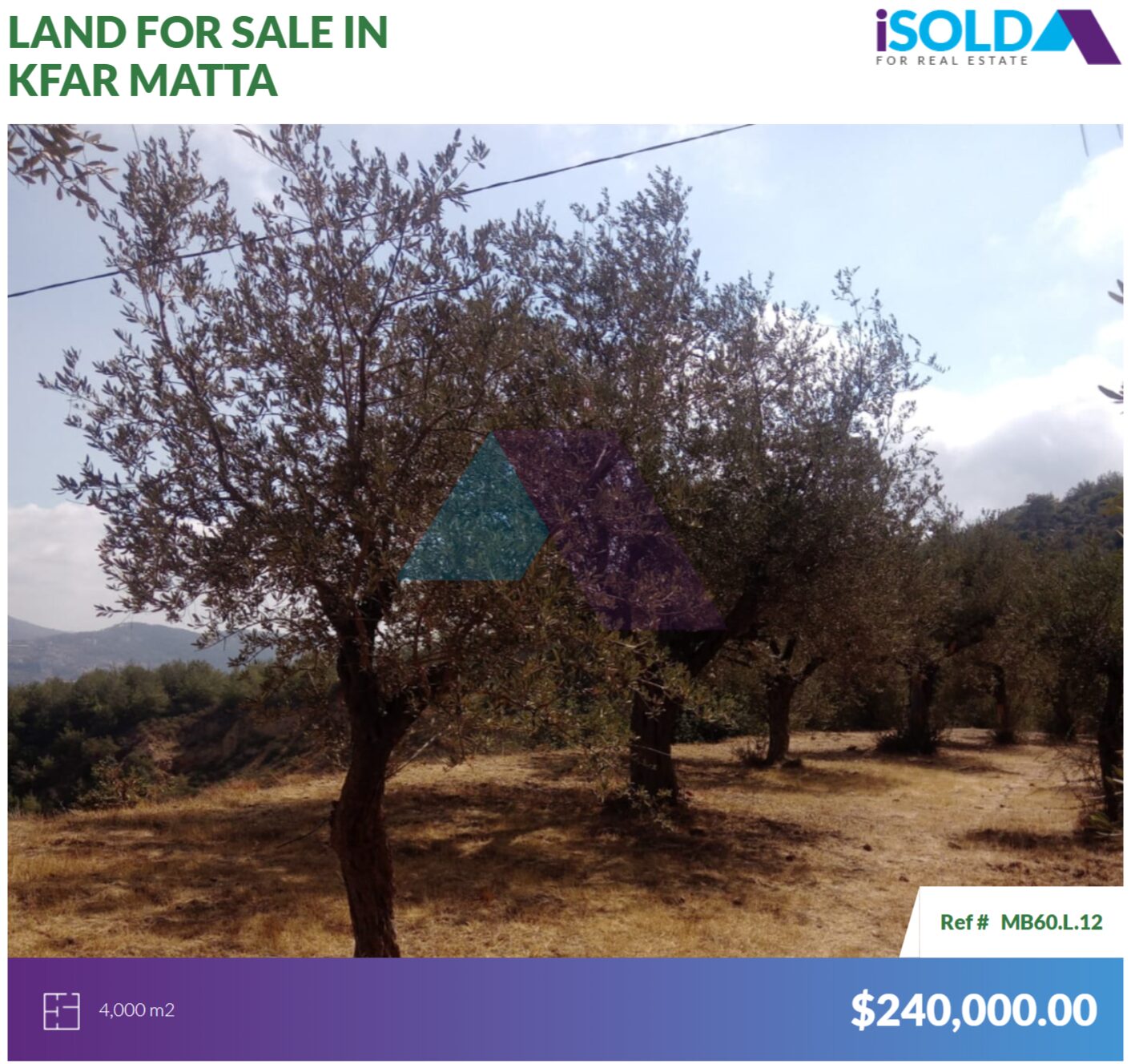 السعر: ٢٤٠,٠٠٠ دولار (٦٠ دولارًا/متر مربع)