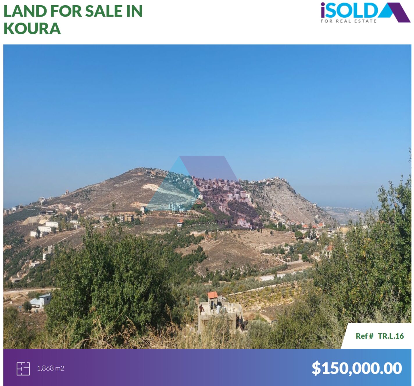 Prime Land+mountain view 4sale in Rechdebine/Koura-أرض للبيع في الكورة